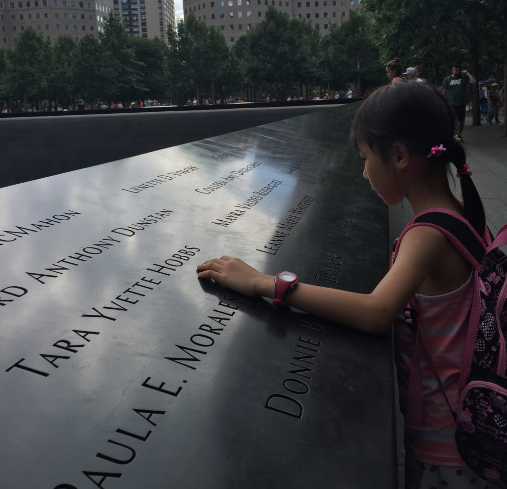 在纽约,世贸中心遗址给我们带来的震撼最大,我也尽我所能向Leah介绍9.11事件以及其影响,也给她说了我自己的感受。对于8岁的孩子来说,自由精神、宗教、政治这些话题都太陌生和遥远,但是生和死的话题仍然引起了她很多的思考。她摸着刻着两千多个死难者名字的世贸中心遗址栏杆,告诉我说舍不得离开,我可以看到她泛红的眼眶,我可以看到孩子的天真和善良。我告诉她,善良的人必须勇敢起来面对邪恶的挑战,除了胜利,文明世界别无选择。我希望善良和正直的价值观能深入孩子思想的深处,我深信这会在一些时候帮助孩子作出正确的人生选择。