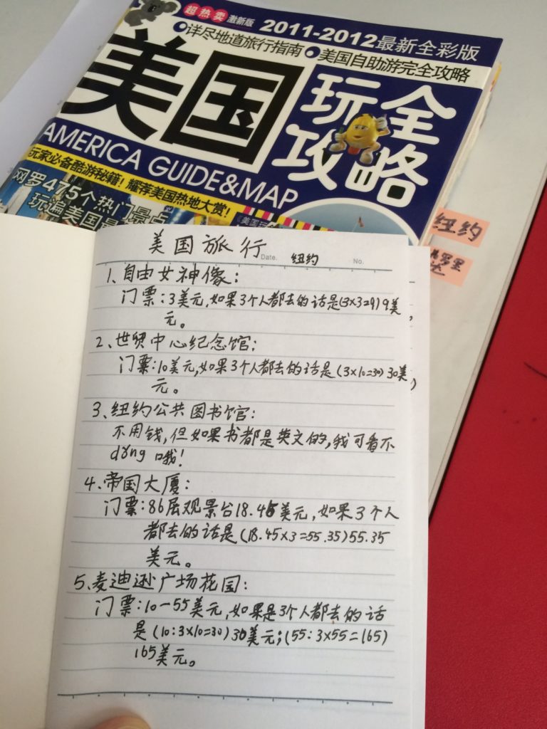 这周我告诉Leah,我和妈妈已经请好两周假期,在暑假带她去她梦想的奥兰多迪斯尼世界。但是我给了她一个任务:计划一下想去的兴趣点,参与我们的行程规划。我给她一本美国旅游手册,告诉她我们计划停留的几个城市,让她提前读一下手册,从里头挑选出自己最希望去的兴趣点,并按照想去的程度分类标注,她高兴地接受任务了。我告诉她这个任务可以花两个星期甚至更多的时间完成,因为平时的功课和活动目前比这件事更重要,也更急一些,我们的行程计划可以在出发前一周左右确定下来。不过孩子还是迫不及待地开始了——我看了一下她的笔记本,很有意思,她为每个兴趣点计算了我们3个人的门票费用(学以致用,很棒!我当时就称赞了她。),而纽约公立图书馆被她列为要去的兴趣点,但她在条目上写着”如果书都是英文的,我可看不懂。”(我跟她说,英语你现在不懂没关系,只要好好学,有一天你会看懂的。)接下来几天,Leah嘴里时不时会蹦出学校教的英文歌和英文对话来。每个孩子都会有好奇心,当明确了目标之后,孩子的学习热情会被激发。我想作为一个教育者(Educator,不光是学校的老师,家长是更重要的教育者),更重要的是激发孩子的探索精神,因为学习和生活都是孩子自己的事情。
