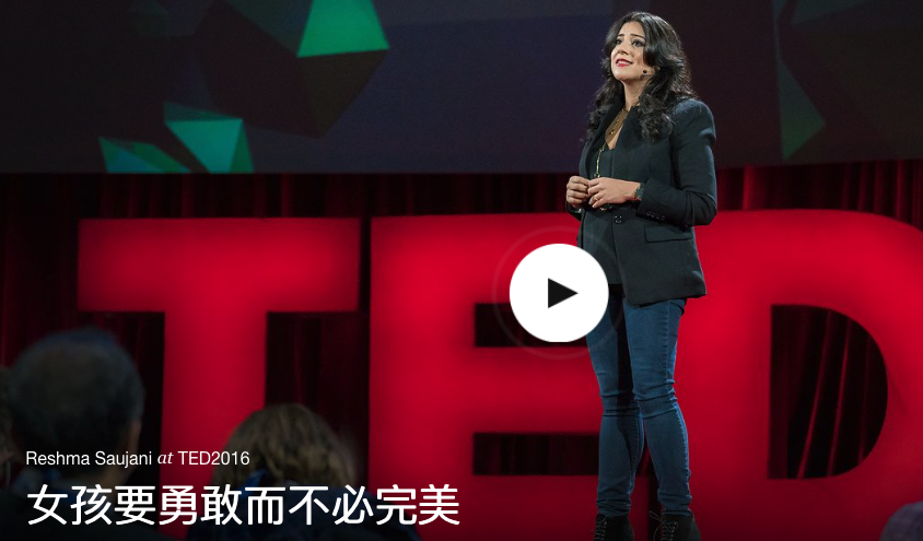 原创文章 / 家庭教育笔记 / 有感二三事 2017-07-31 由 Wilson Li · Published 2017-07-31 孩子,你要勇敢,而不必完美 对这段题为《女孩要勇敢而不必完美》TED演讲视频产生巨大的共鸣。虽然听上去像是女权主义者向保守观念发出的呼叫,但是如果把Reshma Sau...